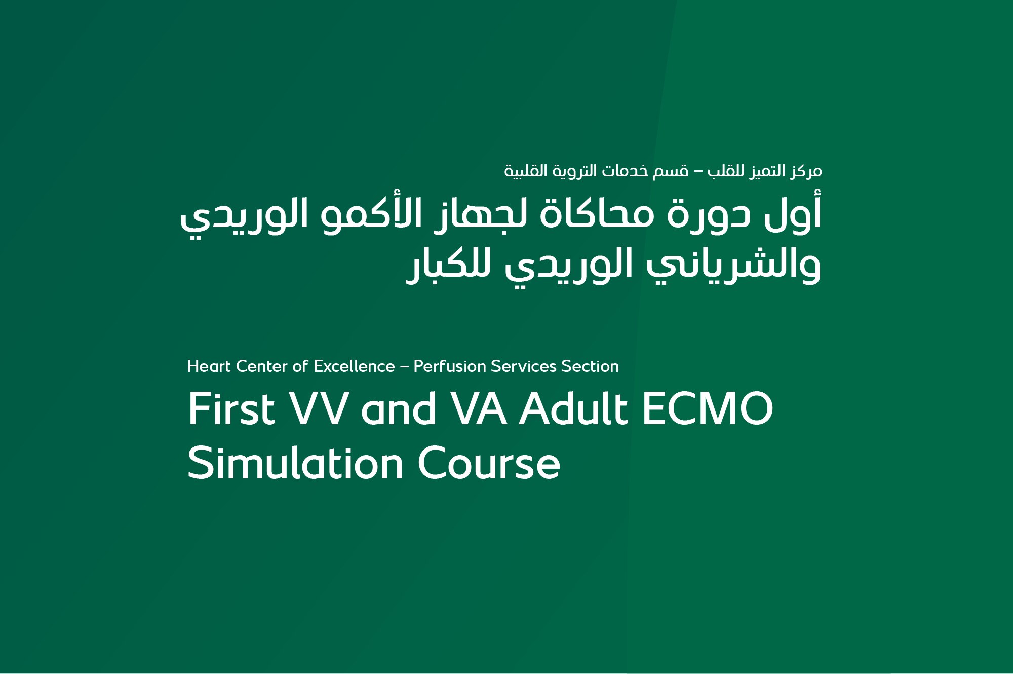 يسر قسم التروية القلبية بمركز القلب دعوتكم لحضور أول دورة محاكاة لجهاز الأكمو الوريدي والشرياني الوريدي للكبار، بمشاركة أطباء ومتخصصين عالميين، وأعضاء معتمدين من منظمة دعم الحياة خارج الجسم (ELSO).