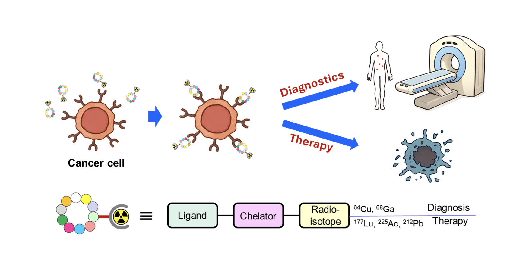 Our group is focused on developing novel peptide-based radiopharmaceuticals that target overexpressed cancer biomarkers on cancer cells. To achieve this, we employ a high-throughput screening method utilizing a combinatorial peptide library. To enhance the binding affinity and specificity of the peptide ligand, we incorporate a small molecule ligand into the peptide library.