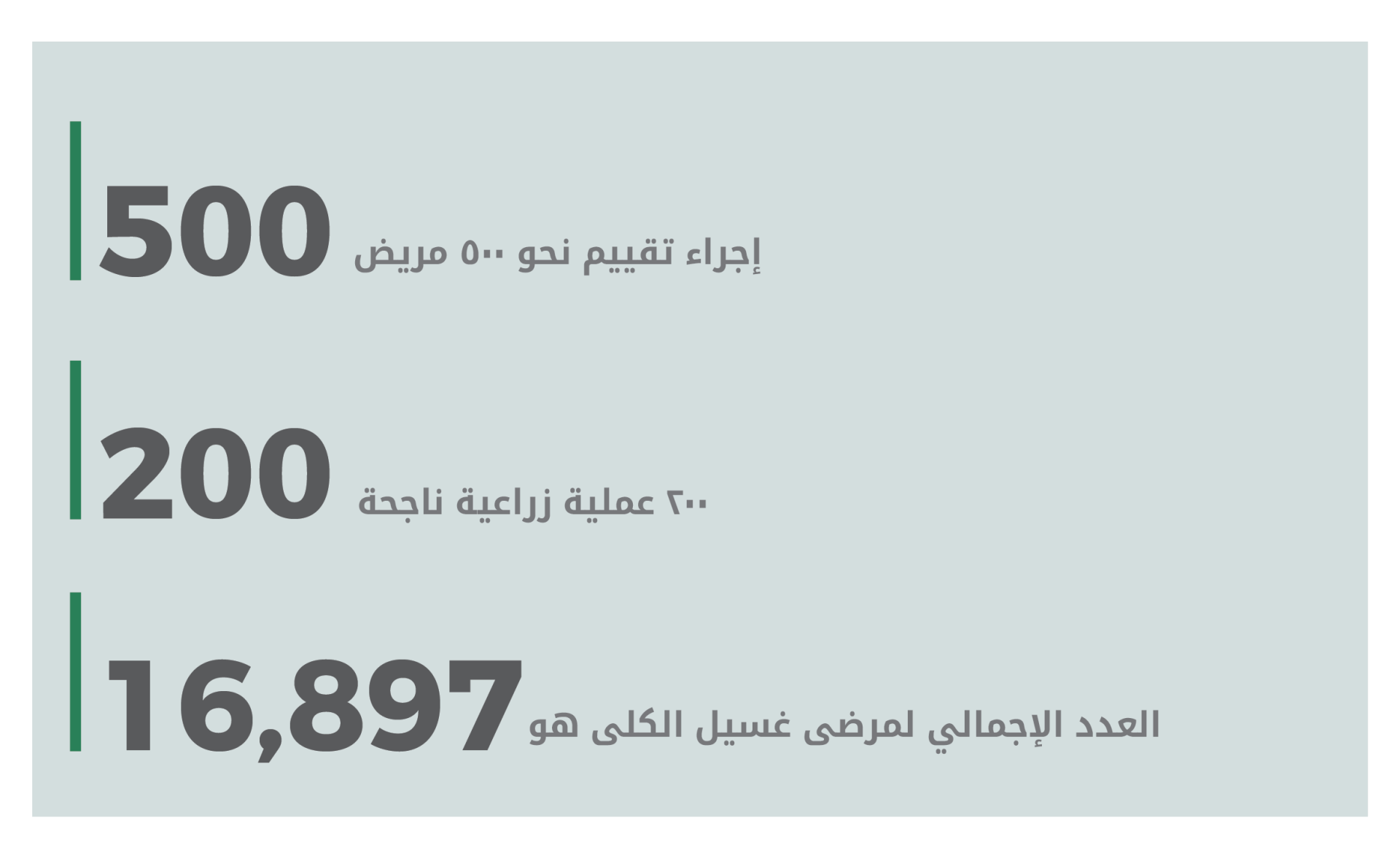 ويعاني كثيرٌ من الناس من الفشل الكلوي ويحتاجون إلى زراعة الكلى. أظهرت الإحصائيات أن العدد الإجمالي لمرضى غسيل الكلى هو 16،897 في المملكة العربية السعودية بنهاية العام 2017، وأن العدد يزداد يوماً فيوماً.